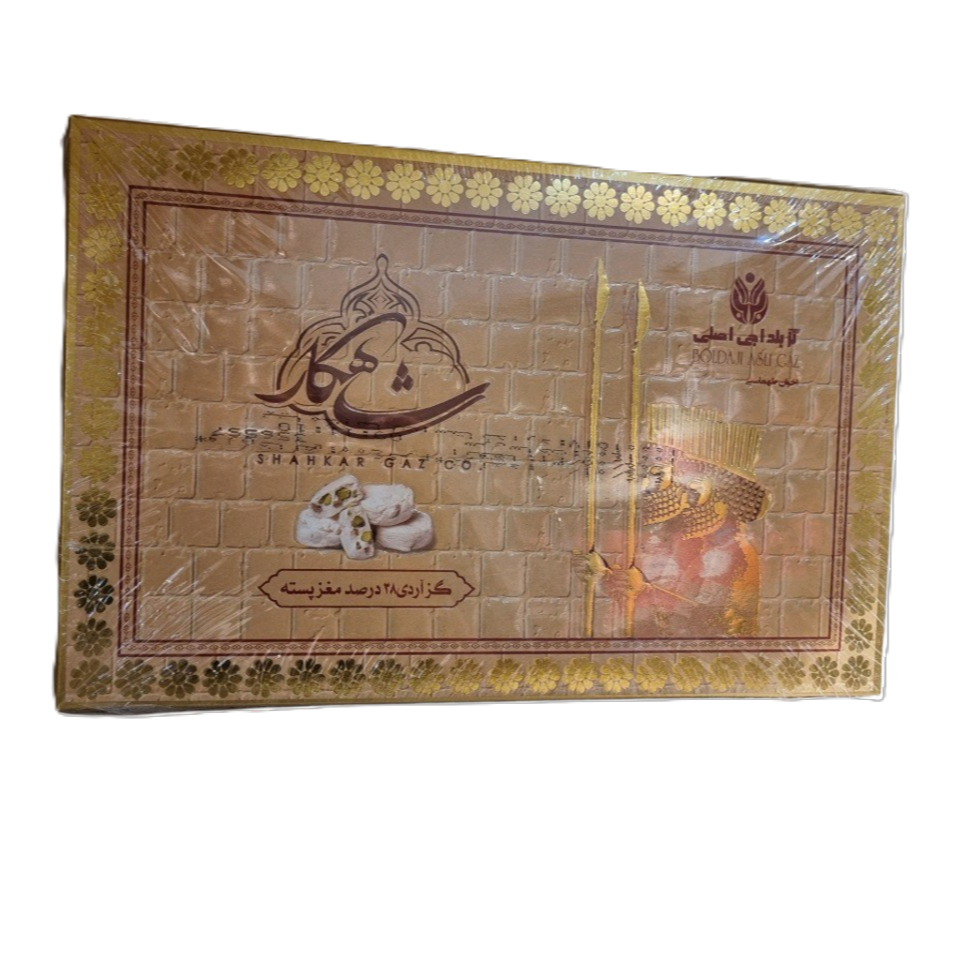 از قدیمی ترین گز های شاهکار میشه به گز آردی 38 درصد پسته سکه ای اشاره کرد.این محصول با جعبه طرح سربازان هخامنشی و گز های سکه ای و ریزی که داره معروفه و جز 5 محصول پر فروش کارخانه گز و سوهان شاهکار به حساب میاد.
